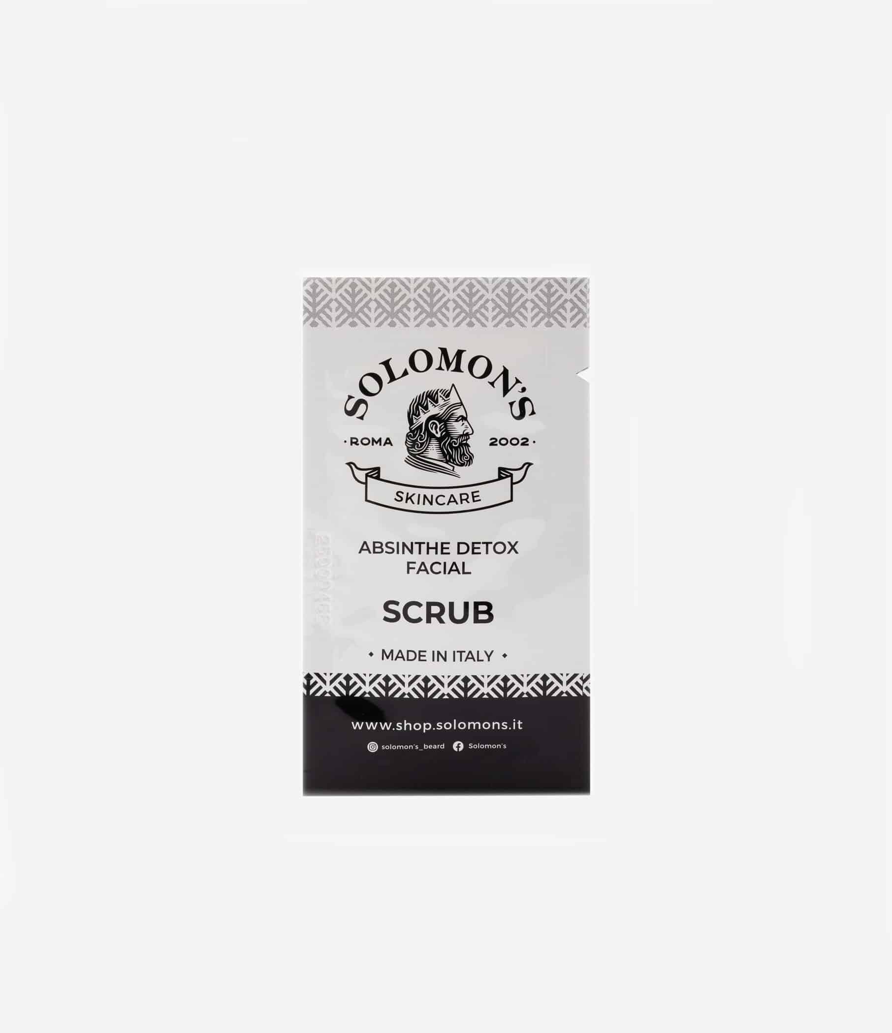 Lo Scrub Viso Absinthe Detox Solomon’s è un gel polifunzionale, perfetto da inserire all’interno del proprio beauty da viaggio, in grado di idratare, rinfrescare, purificare, ossigenare e detergere la pelle. Grazie al formato mini size sarà possibile testare il prodotto prima di finalizzare l’acquisto completo. La pelle apparirà subito più compatta e libera dalle imperfezioni. per una skincare veloce e pratica.